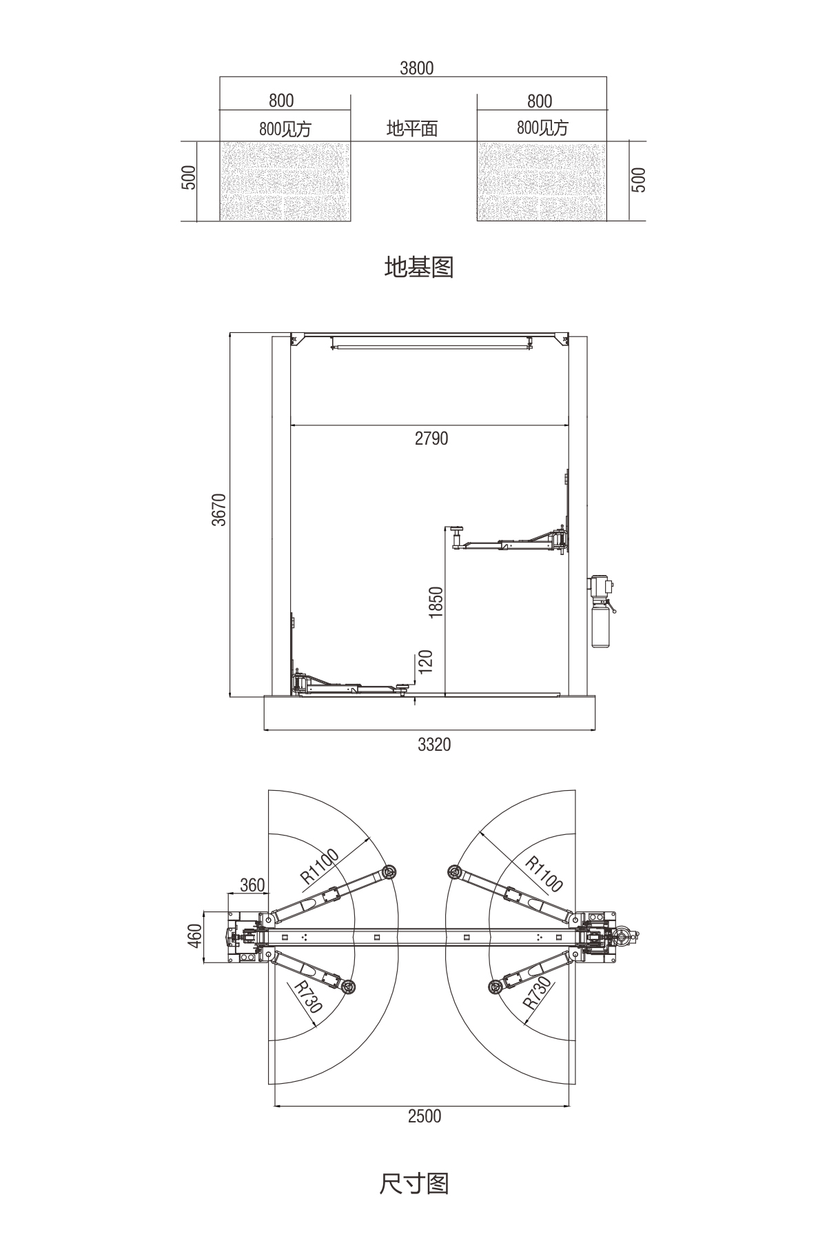 8.支臂采用兩節(jié)、三節(jié)設(shè)計,調(diào)節(jié)范圍更大,適合不同的汽車底盤,三節(jié)支臂選配安裝。